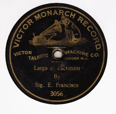 PIANO ACCOMPANIMENT. EARLY VICTOR 10-INCH ISSUE, RECORDED 22 JANUARY 1901. LIGHT SCUFFS AND SCRATCHES. CONDITION CONSERVATIVE. '3'. NOT A BAD COPY FOR A DISC OF THIS AGE!