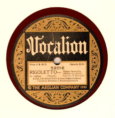 AC US BROWN SHELLAC VOCALION 52016. RIGOLETTO- PIANGI FANCIULLA (VERDI) w/ GIACOMO RIMINI (B).